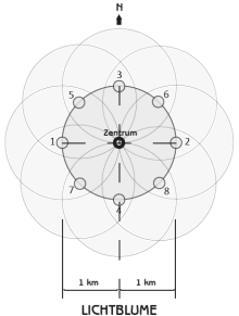 Durch die Anwendung der Schöpfungsgesetze ist es möglich, mit einer Lichtblume (bestehend aus Zentrum und acht Aussenpunkten) 10 km2 Fläche zu beleben. Es ist möglich, durch weitere Punkte auch noch viel grössere Gebiete mit mehr Licht zu versorgen.